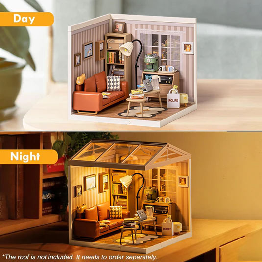 Discover how the miniature houses transform with the day and night scenes, adding a warm, inviting vibe to any room. The vibrant daytime view and cozy nighttime glow make them a charming decor piece with lights on and off.